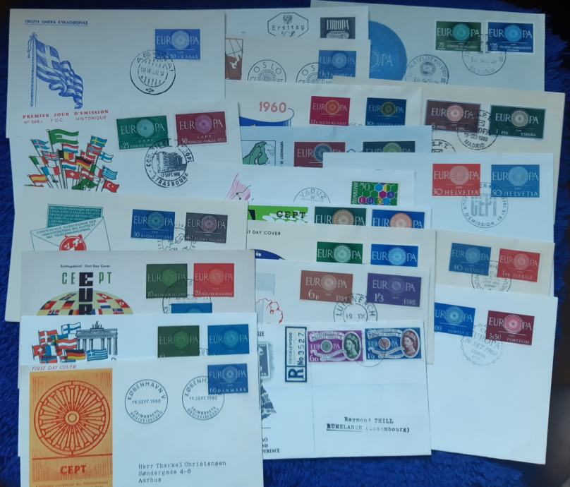 Prodajam dvojnike in ostale viške iz svoje zbirke. EUROPA CEPT – kompletni letnik 1960 FDC brez cenovno nepomembne Belgije, Nemčija 2 x (2 različna), skupaj 20 kosov. V dobrem stanju brez flekov in vonja.