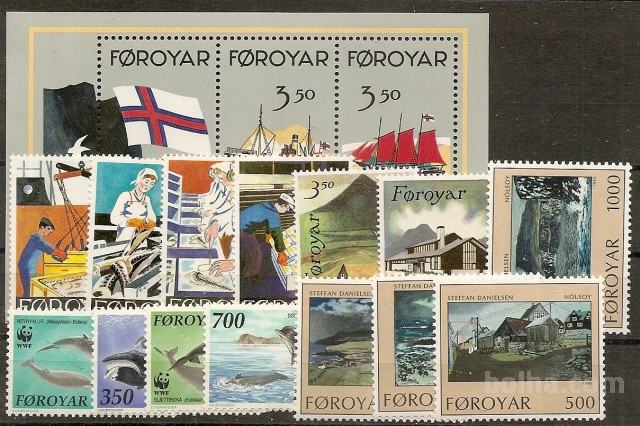 Ferski otoki - Føroyar, celoten nežigosan letnik 1990. Na voljo tudi večino serij od začetka izdajanja znamk te države (1975) do leta 2002 v maloprodaji.