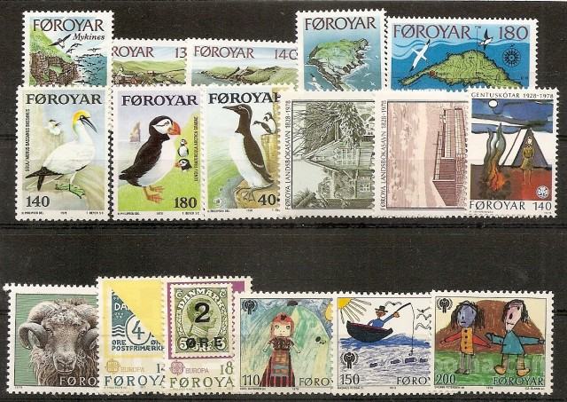 Ferski otoki - Føroyar, celotna nežigosana letnika 1978 in 1979. Na voljo tudi večino serij od začetka izdajanja znamk te države (1975) do leta 2002 v maloprodaji.