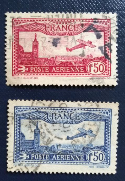 Prodajam dvojnike in ostale viške iz svoje zbirke. Francija 1930, celotni izdaji, letala, avioni, številke po katalogu Michel: 251, 255, kataloška vrednost (Michel): 3,5 €.