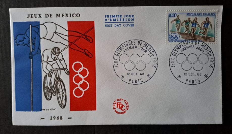 Prodajam dvojnike in ostale viške iz svoje zbirke. Francija 1968, OPD, FDC šport, olimpijada, kolesarstvo.