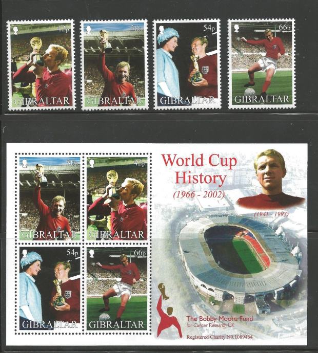 GIBRALTAR 2002 NOGOMET PRVENSTVO ** Mi 1006/1009+B50 serija+blok (12)