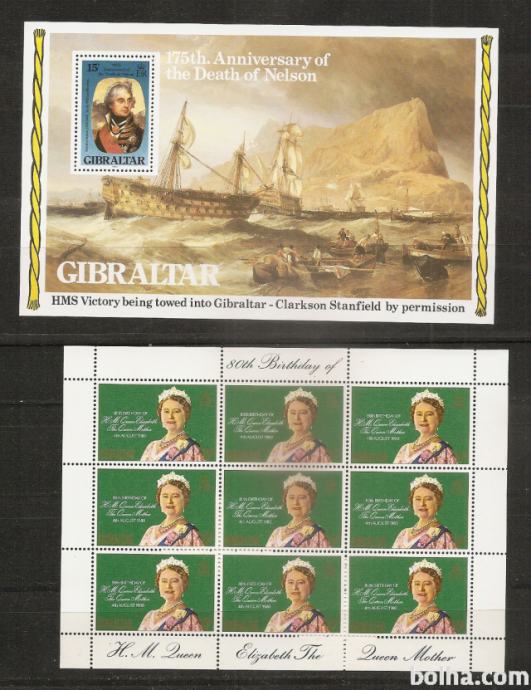 Prodajam dvojnike in ostale viške iz svoje zbirke. Gibraltar, dva nežigosana in brezhibno ohranjena bloka ladje, plovila pomorščaki, kataloška številka Michel: blok 7, 408 KLB.
