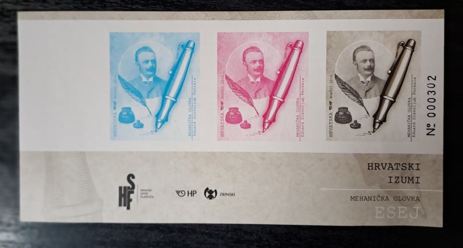 Prodajam dvojnike in ostale viške iz svoje zbirke. Hrvaška, esej (z lepilom) – hrvaški izumi, mehanično pero.