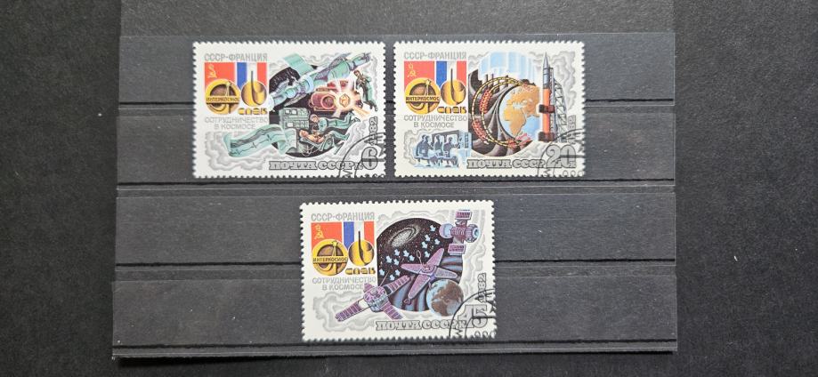 Tema: vesolje, vesoljska plovila, Sovjetsko - Francosko sodelovanje, emblemi, zastave.