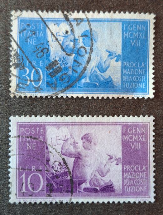Prodajam dvojnike in ostale viške iz svoje zbirke. Italija 1948, celotna žigosana serija, kataloška številka, Michel: 746/7, kataloška vrednost, Michel: 4 €.