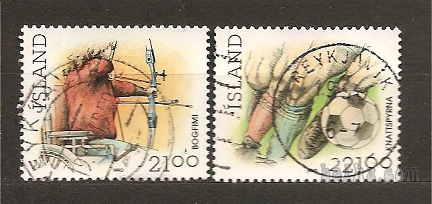 Kompletna serija znamk Island z motivi: šport, nogomet, lokostrelstvo.