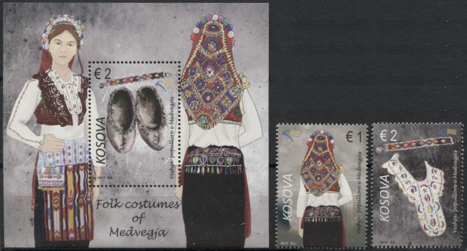 KOSOVO 2017 DEDIŠČINA ŽENSKE NOŠE** Mi 399/401 ** serija+blok (HV-119)
