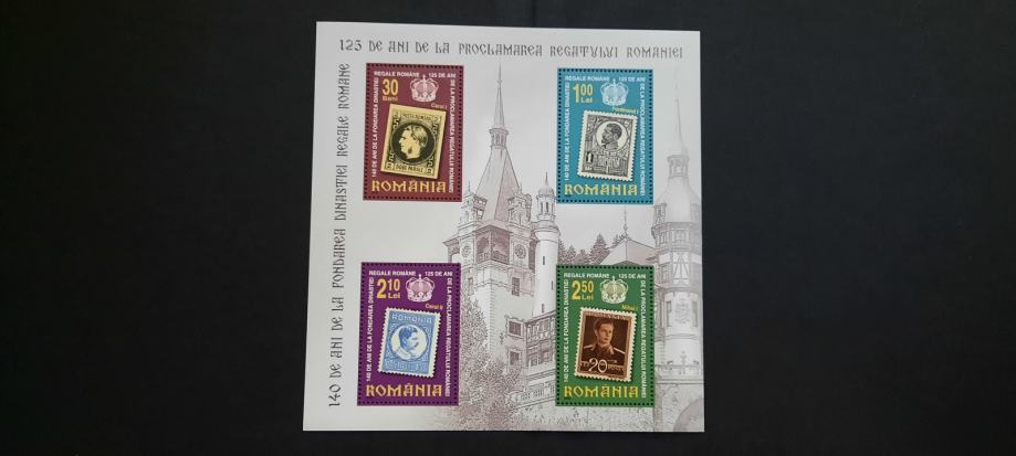 Tema: kraljestvo, kralji, obletnice, 140 letnica kraljevske dinastije in 125 letnica kraljestva, krone, znamka na znamki.