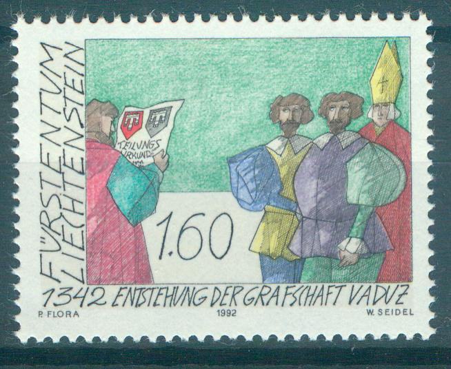 LIECHTENSTEIN ,OBLETNICA VADUZ 1342,ČISTE ZNAMKE, MICHEL 1049, 1992,
