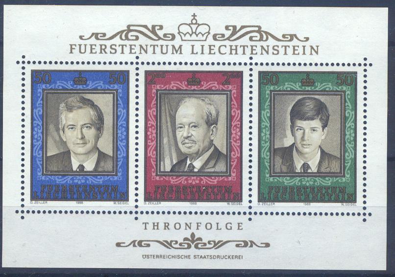 LIECHTENSTEIN ,50 LET NASLEDJA KRONE FRANC JOSEF II,ČISTE ZNAMKE, MICHEL 942/4 BLOCK 13, 1988,