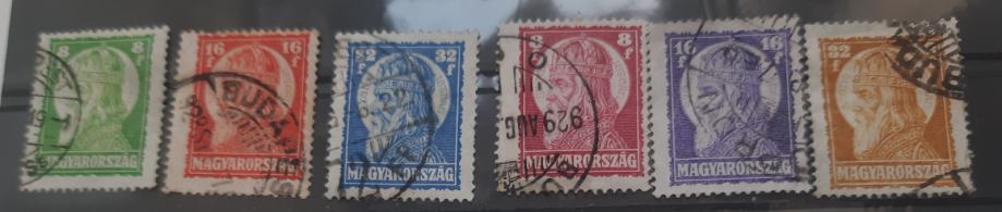 Prodajam dvojnike in ostale viške iz svoje zbirke. Madžarska 1928/9, dve celotni seriji na temo Sv. Štefan, številke po katalogu Michel 438/40, 453/7.