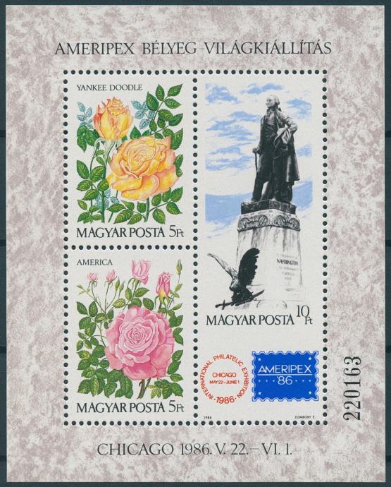 MADŽARSKA 1986 AMERIPEX VRTNICE FLORA * Mi 3822/24 (B184) * blok (VRT)
