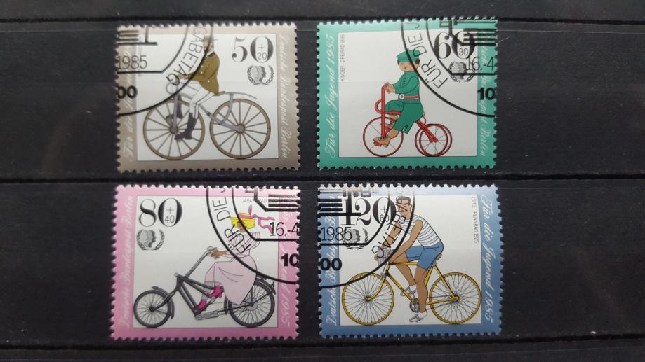 mladina, kolesarji -Nemčija Berlin 1985 -Mi 735/738 -žigosane (Rafl01)