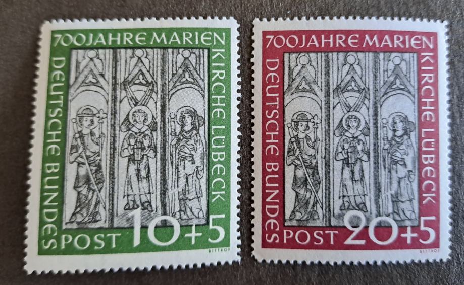 Prodajam dvojnike in ostale viške iz svoje zbirke. Nemčija, Deusche Bundespost, 1949, celotna serija Cerkev v Lübecku, Michel 139/40.