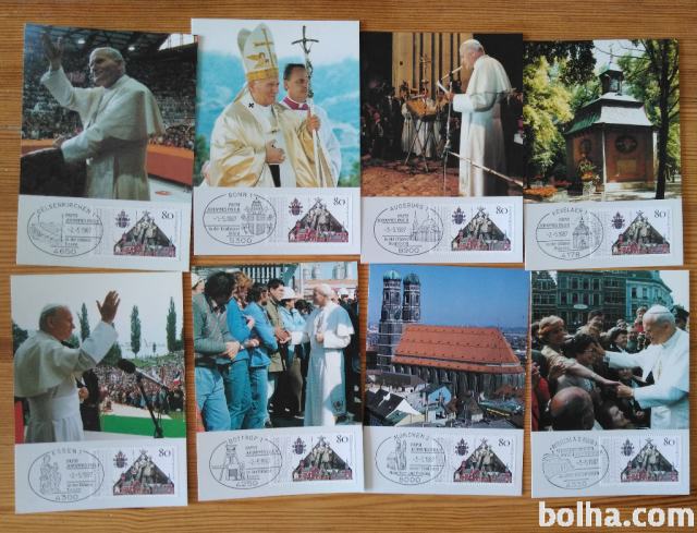Prodajam dvojnike in ostale viške iz svoje zbirke. Papež Janez Pavel II, zbirka 17 priložnostnih kuvert oz. kart s priložnostnimi žigi obiskov dežel: Nemčija, Lihtenštajn, Vatikan.