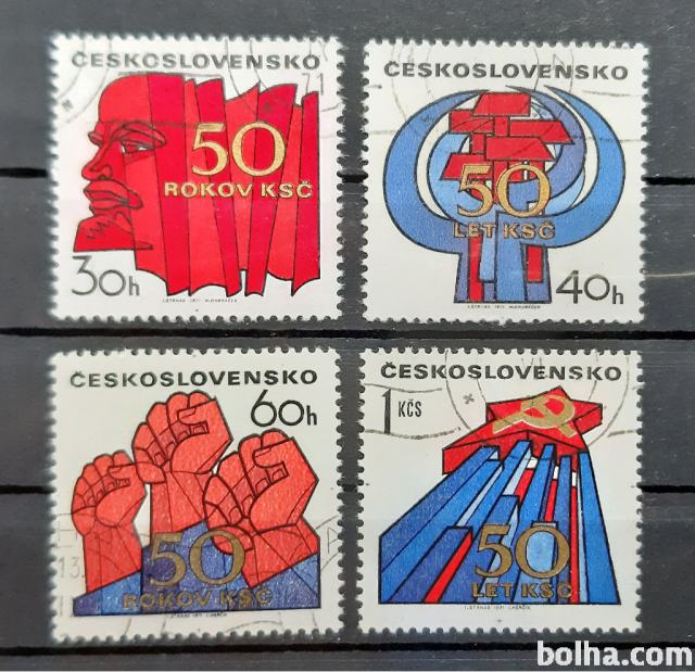 Tema: 50. obletnica KP Češkoslovaške, komunizem, emblem, revolucija.