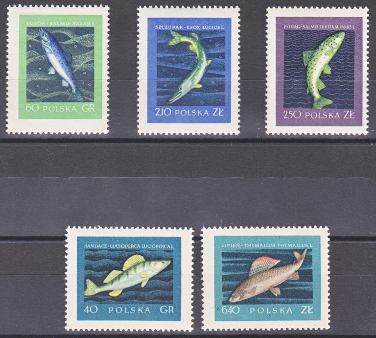 POLJSKA 1958 RIBE MORSKE ŽIVALI FAVNA ** Mi 1051/1055 ** serija (90)