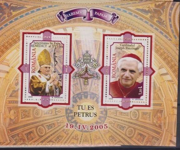 Prodajam dvojnike in ostale viške iz svoje zbirke. Romunija 2005, blok 359 papež Benedikt, Ratzinger. V brezhibnem stanju.