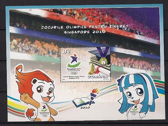 Prodajam dvojnike in ostale viške iz svoje zbirke. Romunija, 2010, celotna izdaja, šport, Signapore 2010, olimpijada, kataloška številka Michel 6461, blok 474. Dobra kakovost.