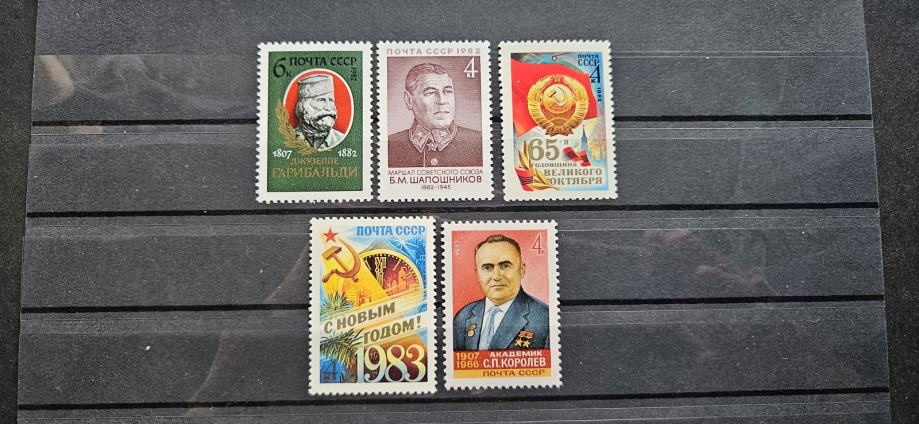 5 čistih znamk (nežigosanih). Gre za posamezne znamke (niso iz serij). Znamke so letnik 1982.