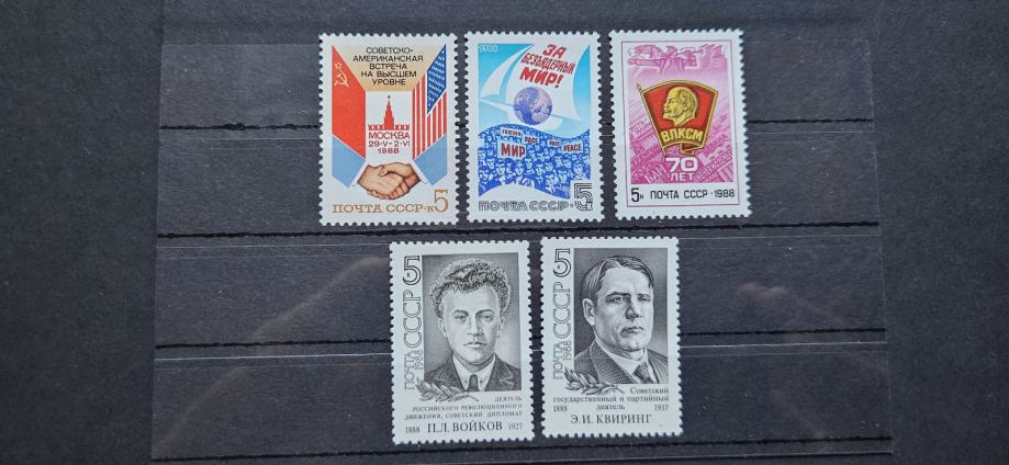 5 čistih znamk (nežigosanih). Gre za posamezne znamke (niso iz serij). Znamke so letnik 1988.
