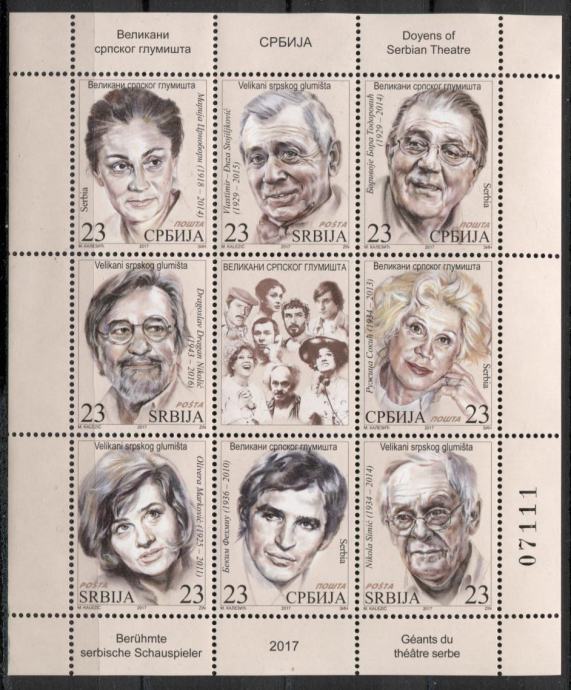 SRBIJA 2017 IGRALCI OSEBNOSTI ** Mi 722/729 ** mala pola (HV-119)