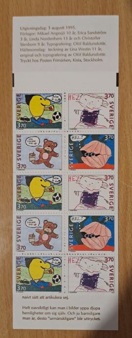 Prodajam dvojnike in ostale viške iz svoje zbirke. Švedska 1995, celotna serija, otroške slike, živali, školjke, kataloška številka: Michel MH 206.