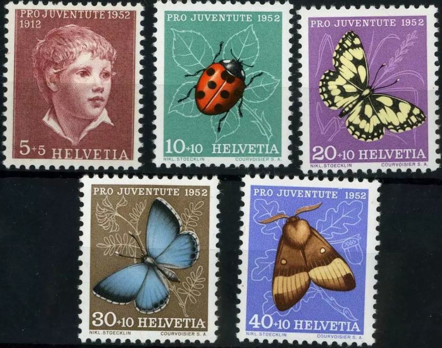 ŠVICA 1952 PRO JUVENTUTE ŽIVALI ŽUŽELKE ** Mi 575/579 serija (HV-173)