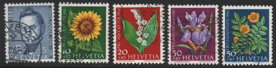 ŠVICA 1961 PRO JUVENTUTE RASTLINE FLORA * Mi 742/746 serija žigos (39)