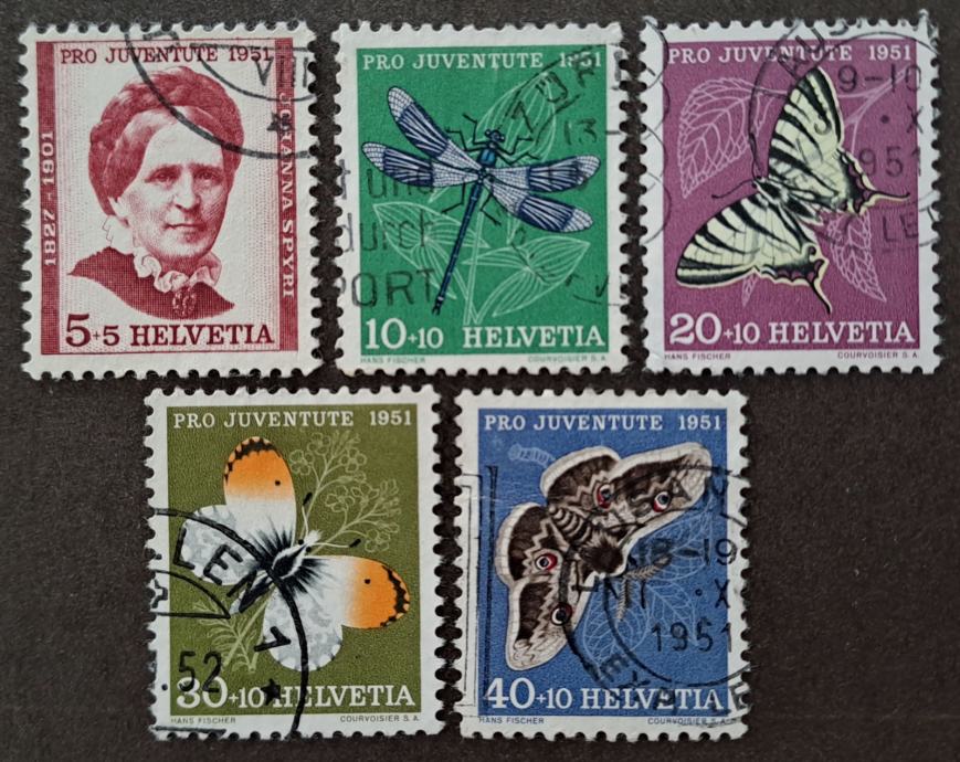 Prodajam dvojnike in ostale viške iz svoje zbirke. Švica, celotna serija 1951 - pro juventute, favna, živali, insekti, številke po katalogu Michel: 561/5, kataloška vrednost: 28 €.