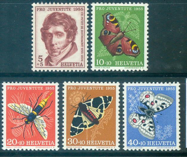 PRO JUVENTUTE-METULJI, ČISTA SERIJA-FALC , MICHEL 618/22, 1955,