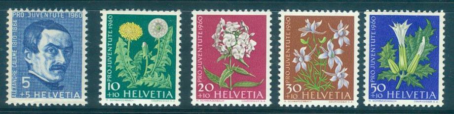 PRO JUVENTUTE ,ROŽE ČISTA SERIJA-FALC , MICHEL 722/6, 1960,