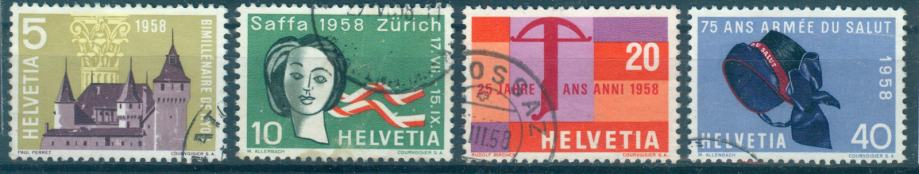 ŠVICA,OBLETNICE 1958 , ŽIGOSANA SERIJA, MICHEL 653/6, 1958,