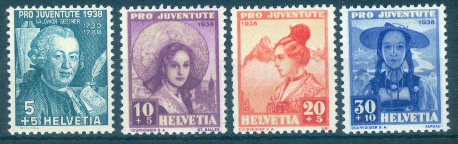 ŠVICA,PRO JUVENTUTE, ZNANE OSEBE ČISTA SERIJA, MICHEL 331/4, 1938,