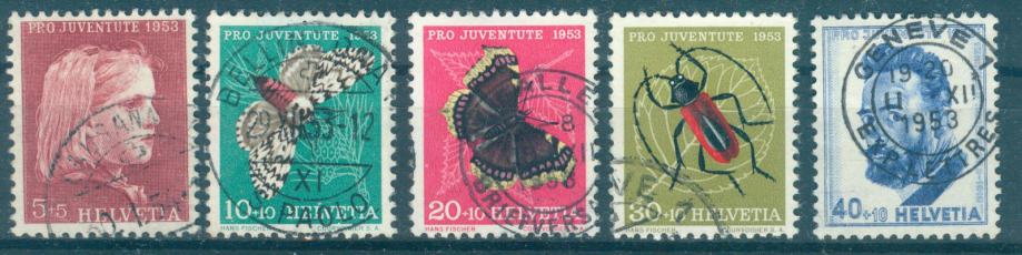 ŠVICA,PRO JUVENTUTE, FLORA, ŽIGOSANA SERIJA, MICHEL 588/92, 1953,
