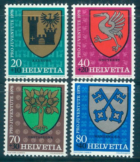 ŠVICA PRO JUVENTUTE-GRBOVI KANTONOV, ČISTA SERIJA, MICHEL 1142/5,1978