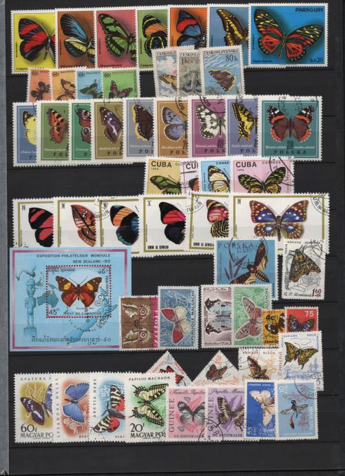 Tematika - 50 različnih žigosanih znamk - metulji.