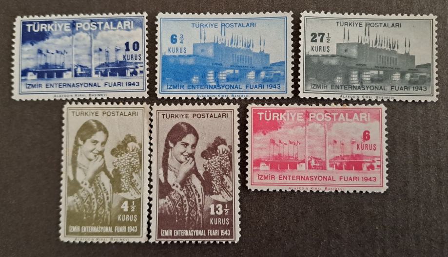 Prodajam dvojnike in ostale viške iz svoje zbirke. Turčija 1943 – celotna nežigosana serija - grozdje, trta.
