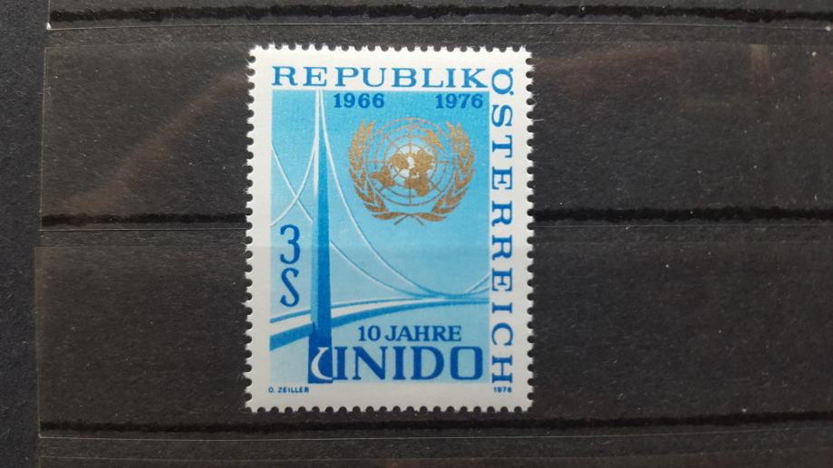 Tema: 10 letnica organizacije, UNIDO - organizacija Združenih narodov za industrijski razvoj, arhitektura.