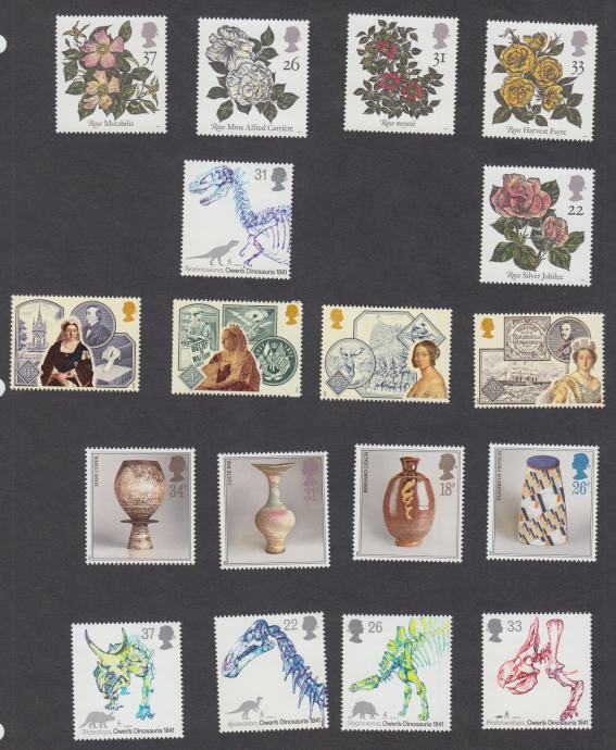 Velika Britanija - 5 kompletnih serij dinozavri, Viktorija, rože, vaze