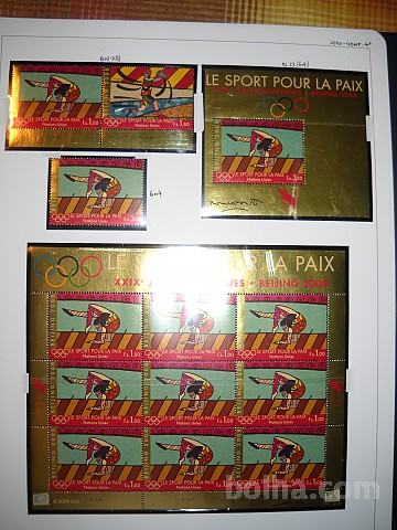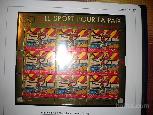 Prodajam dvojnike in ostale viške iz svoje zbirke. Združeni narodi Ženeva 2008 – šport, olimpijada Peking (Michel 602/4 + mali poli 602/3 + blok 23). Prodam po nominalni vrednosti.