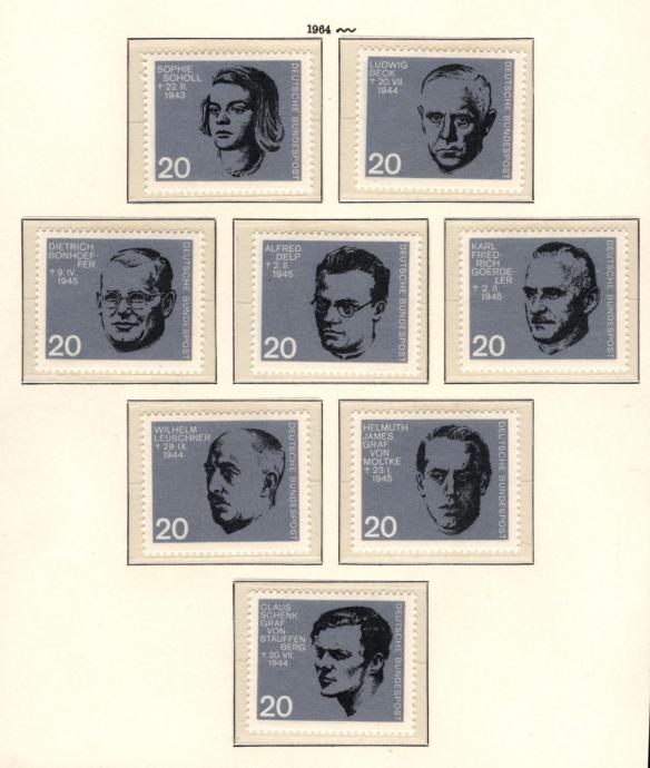 Nemčija (Deutsche BP) 1964 - serija osmih znamk ob 20. letnici atentata na AH. Znamke so čiste - nežigosane