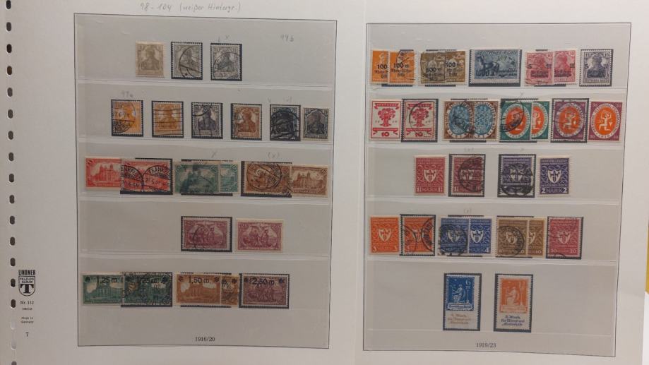 Prodam znamke NEMŠKI RAJH (1872-1932) v profesionalnem albumu LINDNER z 38-imi Lindner vložnimi listi. Vsebina albuma je "bogata", saj vsebuje zelo veliko dvojnih znamk(čiste in žigosane).Album in vložni listi so zelo ohranjeni (cena albuma in listov na ebay-u je preko 100 eurov-rabljenih). Vsebina je prikazana na priloženih fotografijah. Poleg PODARIM še 6 albumov za znamke(rabljeni, ohranjeni)!!!