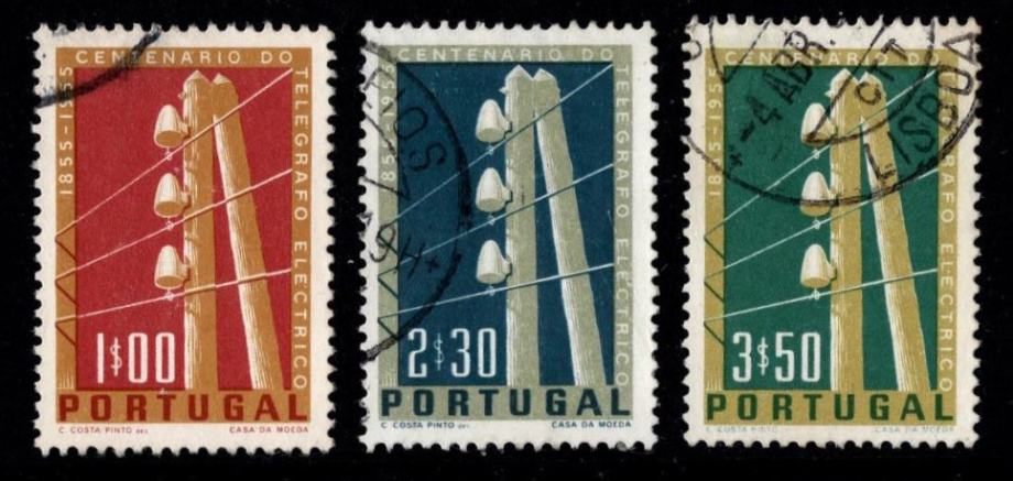 Portugalska - Portugal 1955 serija treh znamk 100 let telegrafa. Znamke so žigosane. Michel : 844, 845, 846.