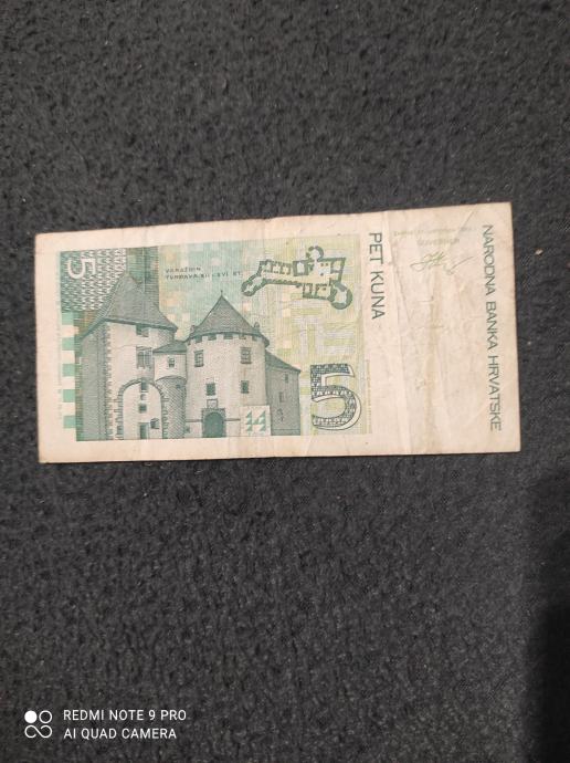 Bankovec za 5 kun redkejši bankovec saj so ga kmalu nadomestili z kovancem cena 3€