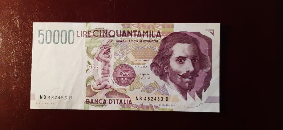 Ohranjen bankovec 50.000 lir, letnik 1992.