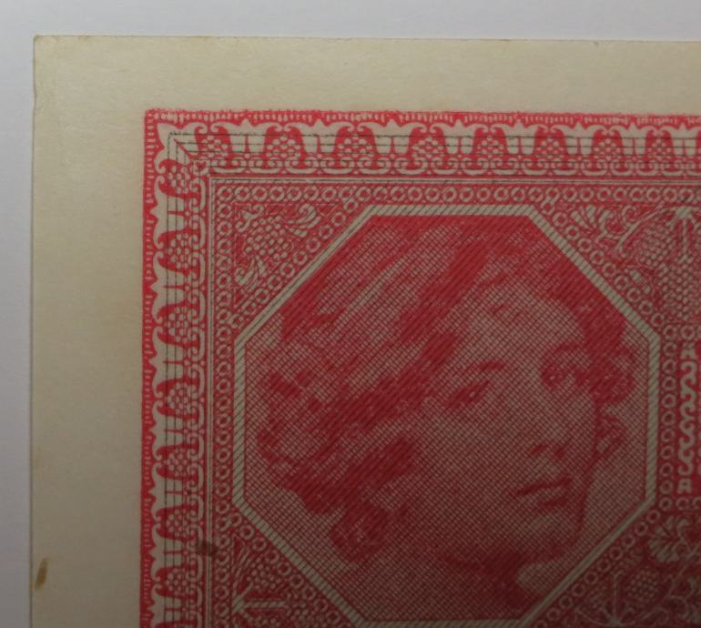 Odlično ohranjen bankovec Avstrije / Avstro Ogrske za 2 Kroni s pretiskom Deutschosterreich letnik 1917. Bankovec je popolnoma nov, nerabljen, ima pa rahlo nepravilnost na robu, kot kažeta 3. in 4. slika, zato ocena UNC-.