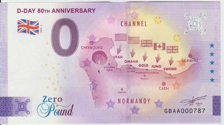 Prodam SPOMINSKI BANKOVEC 0 EURO ANGLIJA-80 LET DAN D 2024
