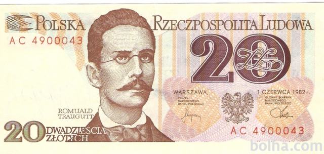 PRODAM RAZLIČNA BANKOVCA 20 ZLOTYCH P149 (POLJSKA) 1982.UNC kvalitete.
